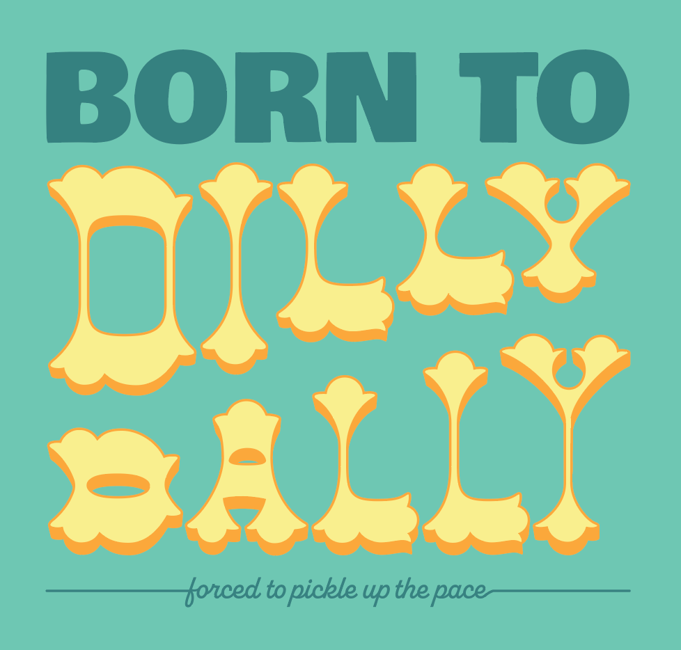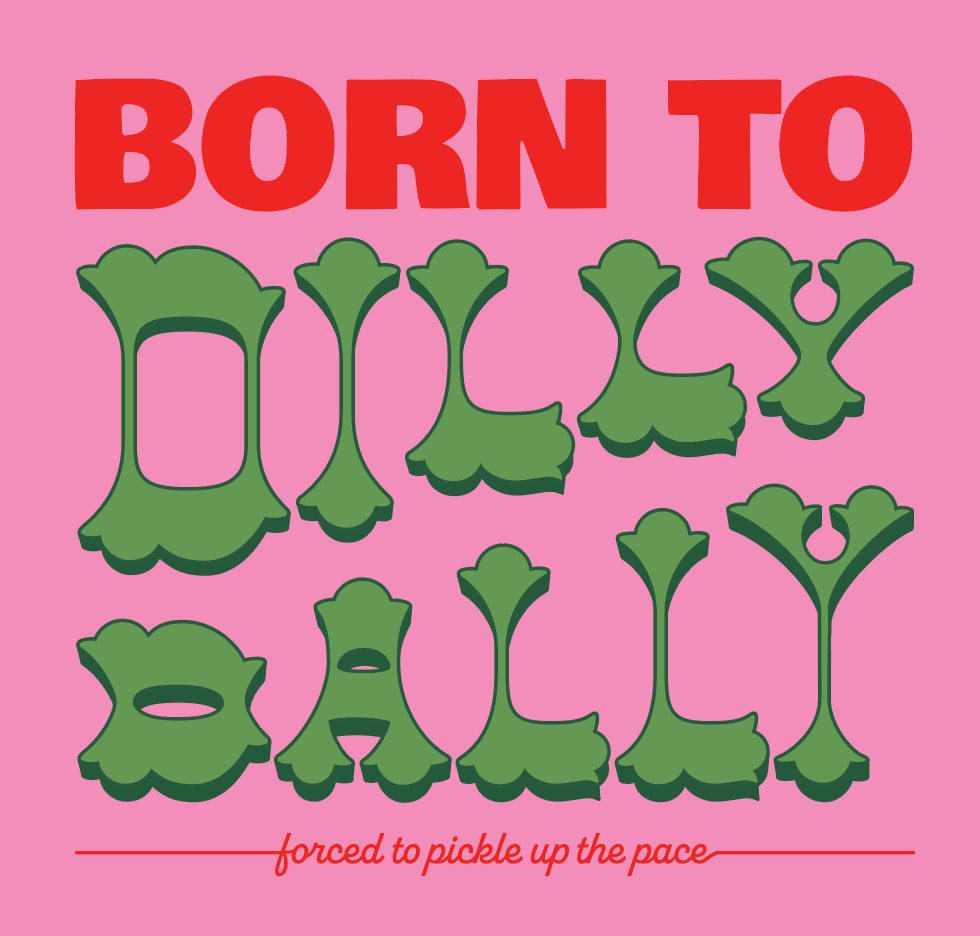 DillyDally is a theoretical pickle brand developed to capitalize on Gen Z’s enthusiasm for pickles and bold, personality-driven food branding. The visual identity is colorful, playful, and irreverent, using vibrant graphics and expressive typography to create a sense of fun and collectability. The project includes full packaging design as well as a line of branded merchandise, extending the identity beyond the jar and into lifestyle objects. Through this concept, I explored how humor, trend awareness, and strong visual language can build an engaging brand experience for a younger audience.